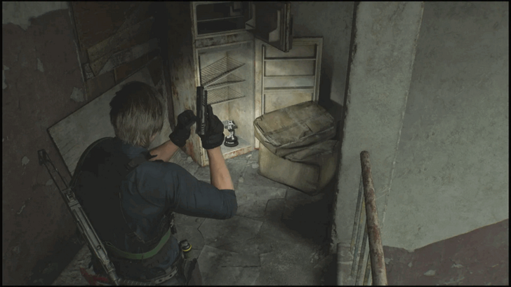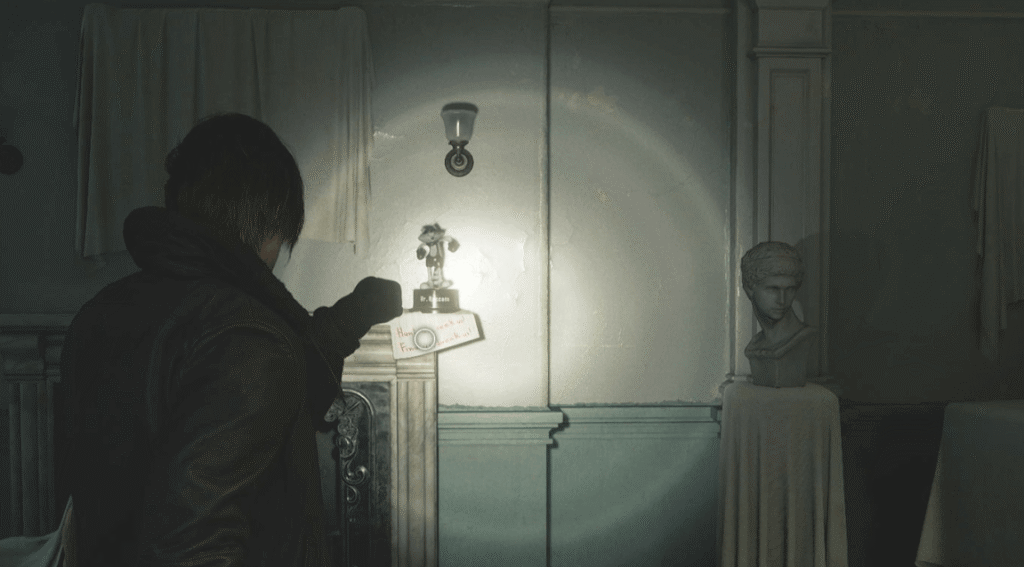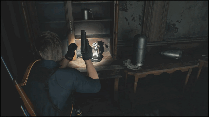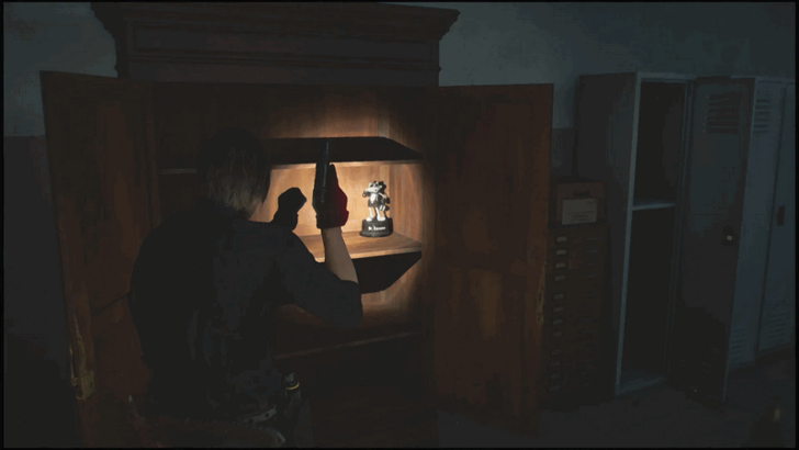 Quando jogar de Leon, volte à Records Room e destrua o closet deformado/warped para revelar o boneco dentro.