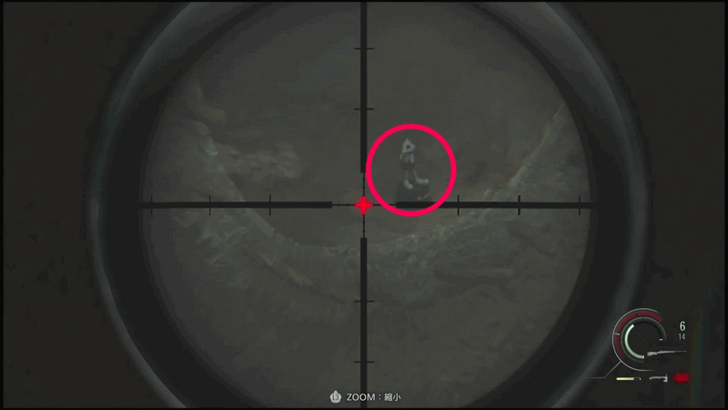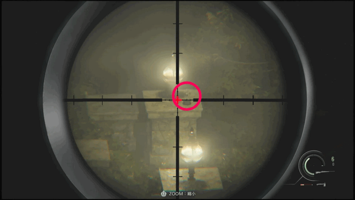 Durante o segmento onde você mira com sniper para proteger Grace/Emily, olhe para um poste de luz no jardim — o boneco está lá acima.