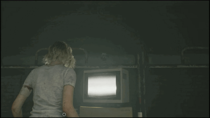 No porão, usando o Joint Plug para destrancar a Bunkroom, o boneco está sobre a TV antiga.