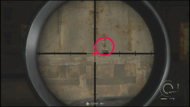 No topo do armazém, mire com a sniper rifle em um van abandonado no viaduto — o boneco está sobre o teto.